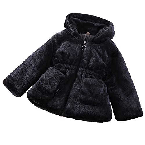 FYMNSI Neonata Bambina Cappotti da Inverno Faux Pelliccia Ragazze Cappotto con Cappuccio per Orecchie Giacche da Manica Lunga Morbido Caldo Abbigliamento Giacca del Mantello Spessi Nero 4-5 Anni