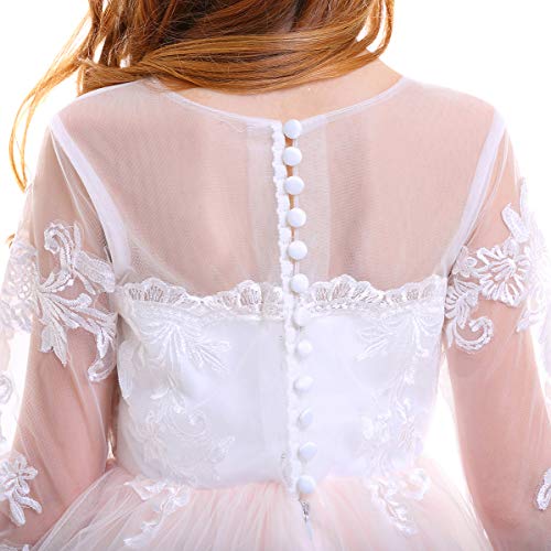 ❤ DESIGN: Abito da principessa di design bello e grazioso per ragazze di fiore, maglia a maniche lunghe, retro cerniera nascosta, con decorazioni a bottoni. Corpetto aderente con fodera morbida, scollatura a fiori in pizzo trasparente con motivo floreale.Gonna lunga tutu in tulle multistrato con morbida fodera interna. Immagine reale, vestito eccellente. Alla tua ragazza piacerà. Indossando un vestito così sensazionale la tua ragazza riceverà molti complimenti