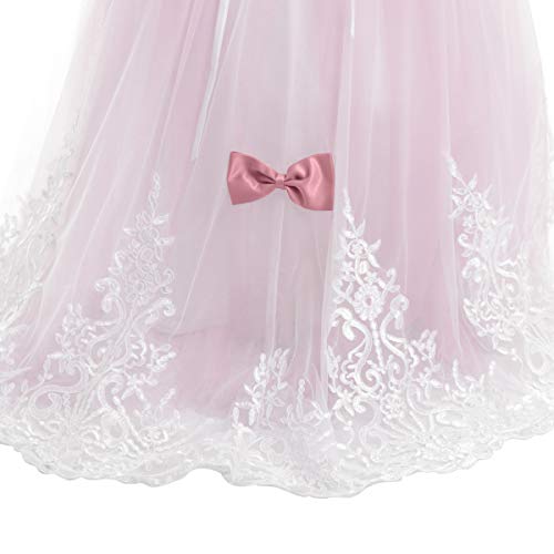 FYMNSI Vestito da Prima Comunione per Bambini Ragazza di Fiori Maxi Abito Lungo Tulle Vintage Pizzo Principessa Senza Maniche Abito da Cerimonia Formale Nuziale Damigella d'Onore Rosa 4-5 Anni