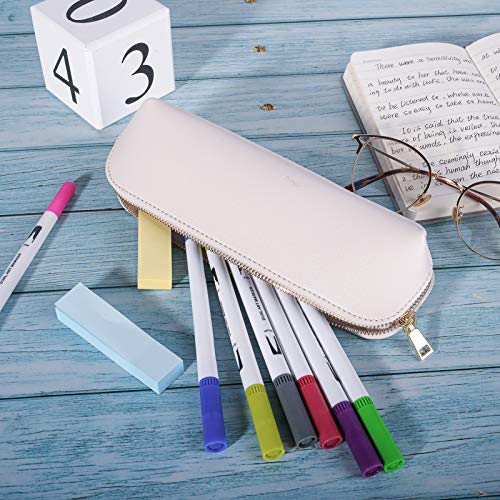 Fyore Astuccio in pelle per adolescenti, unisex, per scuola e ufficio, regalo per l'inizio della scuola (beige)