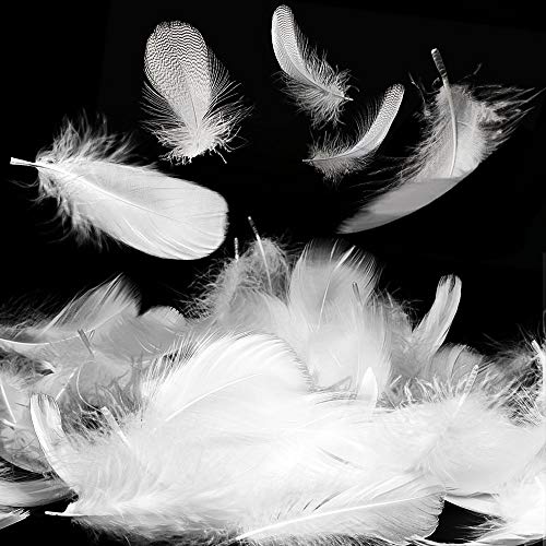 FYSL Piume Bianco 300 Pcs Piume Bianche Naturali per il Costume, Borse, Decorazione Degli Orecchini, Acchiappasogni di DIY, Festival Nozze Decorazioni