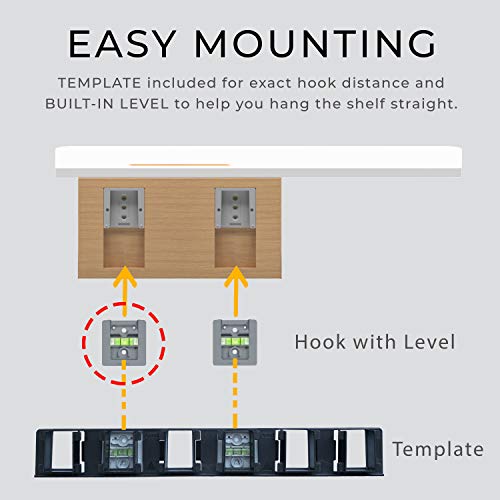 Facile installazione: ogni ripiano galleggiante bianco include ganci da parete brevettati con livello integrato che rende l'installazione un gioco da ragazzi