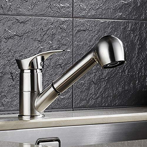 FZHLR European Bagno Vasca Lavello Rubinetto Estrae Il Dispersore Di Cucina Rubinetto In Ottone Fredda Miscelatore Acqua Calda Rubinetti Montati 360 Pianale Oscillante, Nichel Spazzolato