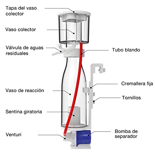 Piccolo schiumatoio per proteine in-vasca o appeso-in-coppa (diametro di soli 3 pollici). Ideale per la maggior parte degli acquari con barriera corallina domestici senza pozzetto, fino a 30 galloni! Ora puoi avere un acquario con barriera corallina a casa tua senza doverti preoccupare degli spazi.