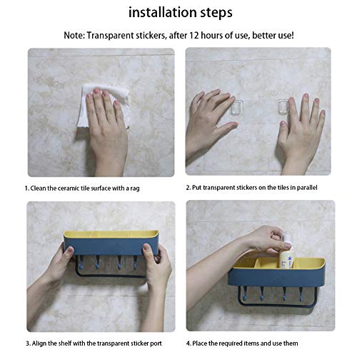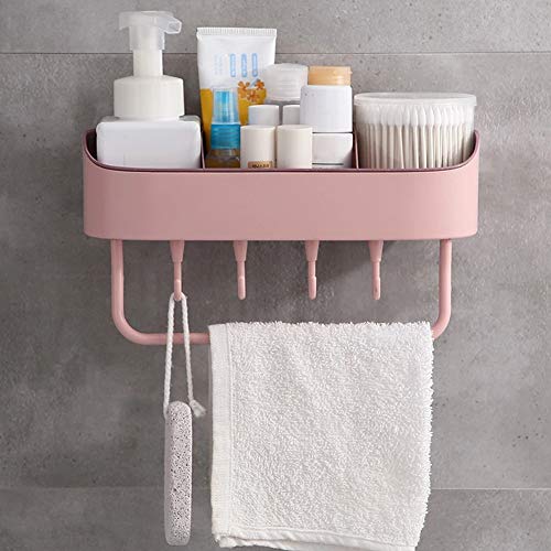 FZX514 Mensola da Doccia in Plastica Autoadesiva, Senza Foratura,con 4 Ganci e 1 Asta Porta Asciugamani per Bagno e Cucina(26 * 11 * 6.5cm),Rosa