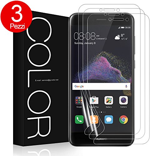G-Color Pellicola P8 Lite, [3 Pezzi] Pellicola Morbida in TPU [Alta Definizione Senza Bolle] Facile da Installare Trasparente Pellicola Protettiva per Huawei P8 Lite (2017) - Garanzia a Vita