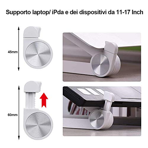 G-Color Supporto per PC Portatile Angolazione Regolabile Pieghevole Supporto da 11-17 Pollici per Computer Portatile/Notebook/MacBook PRO/MacBook Air/iPad Laptop Stand-Bianco