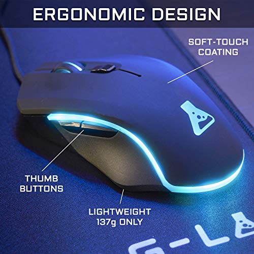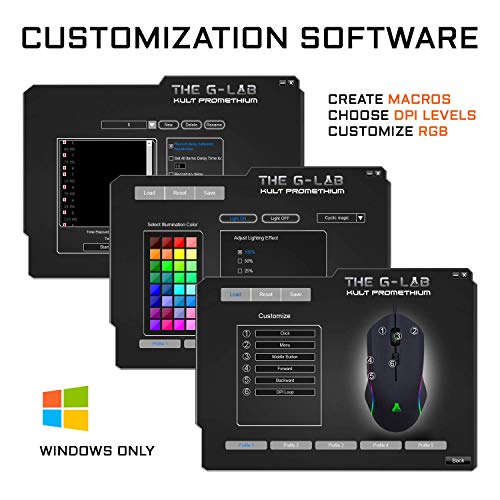 THE G-LAB Kult PROMETHIUM Mouse Da Gioco 8200 DPI Sensore Laser Estremamente Preciso - Mouse da gioco con cavo USB, 6 pulsanti programmabili, Retroilluminazione RGB 100% - PC PS4 Xbox One Mac (Nero)