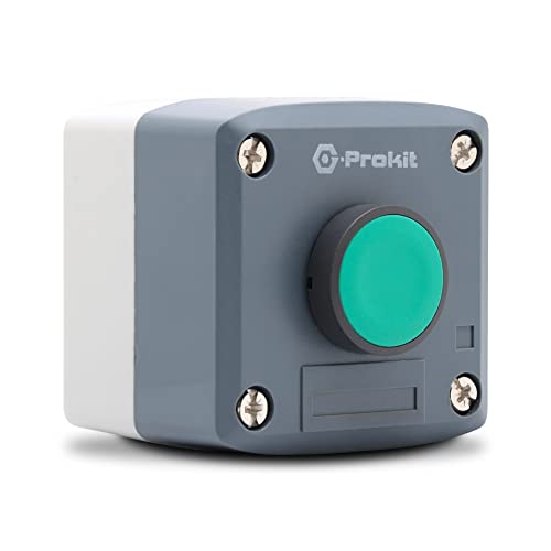 G-Prokit Interruttore industriale a pulsante IP65 a 1 via, alloggiamento grigio, stazione a pulsante verde, stop/start, impermeabile, preassemblato con blocco di contatto (verde a 1 via)