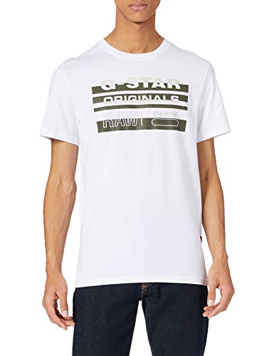G-STAR RAW Men's Originals Stripe Logo T-Shirt, Bianco (white D19268-336-110), S