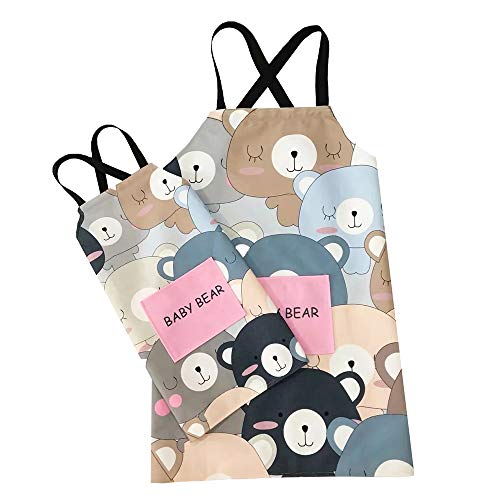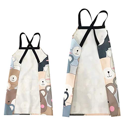 G-Tree Confezione da 2 cartoni animati in cotone, grembiule per bambini, bambini, padre madre e figlia adolescente e abbinati, per cucinare, cucinare, pittura, caffè, festa