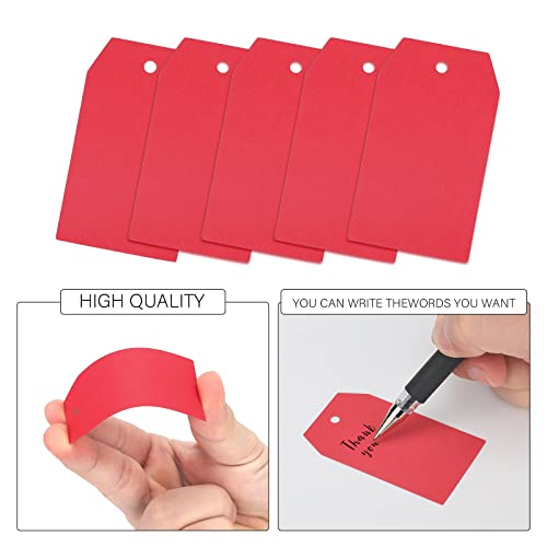 G2PLUS 100PCS Etichette in Carta Kraft,7x4CM Etichette Kraft Etichette RegaloTag Regalo Etichetta di Matrimonio,Etichette con Spago per la Comunione di Nozze di Compleanno Natale,Rosso