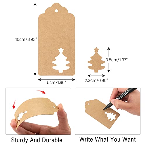 G2PLUS 100pcs Tag Regalo Etichette,Etichette Regalo,targhette Carta kraf, Etichette Artigianali con 30 Metri di spago di Iuta Perfetta per Decorare L'Albero di Natale, Lavoro Fatto a Mano(Marrone)