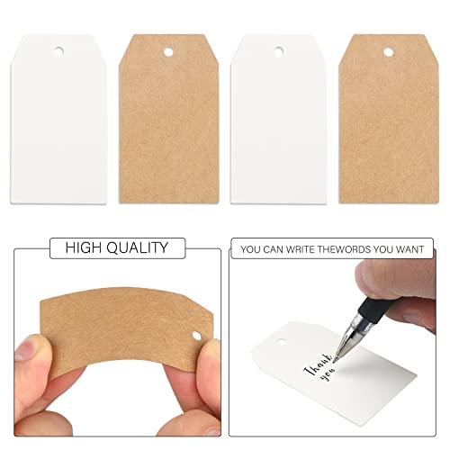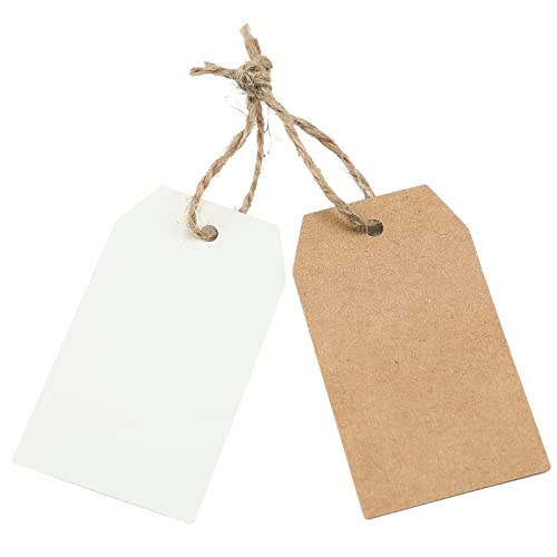 G2PLUS 200PCS Etichette in Carta Kraft,7x4CM Etichette Kraft Etichette RegaloTag Regalo Etichetta di Matrimonio,Etichette con Spago per la Comunione di Nozze di Compleanno Natale,Bianco+Marrone