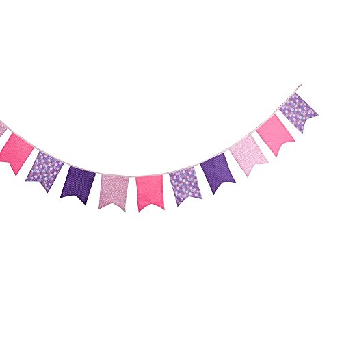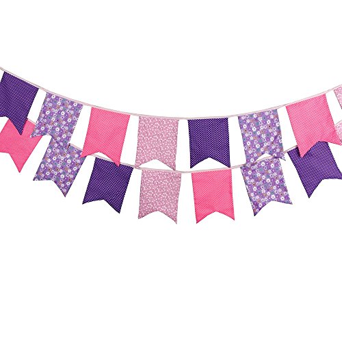 G2Plus Festone di bandierine in tessuto di cotone, 3,5 m, motivo floreale, double face, 12 bandierine per feste di compleanno, Cerimonie, decorazione Purple