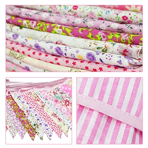 G2PLUS 10M Multicolore Bandierine,Ghirlanda di Bandierine,Banner Tessuto Bunting,Triangolo Bandiera Ghirlanda,36PCS Bandiera, Doppia Vintage Decorazione per Matrimoni Feste di Compleanno(Rosa)