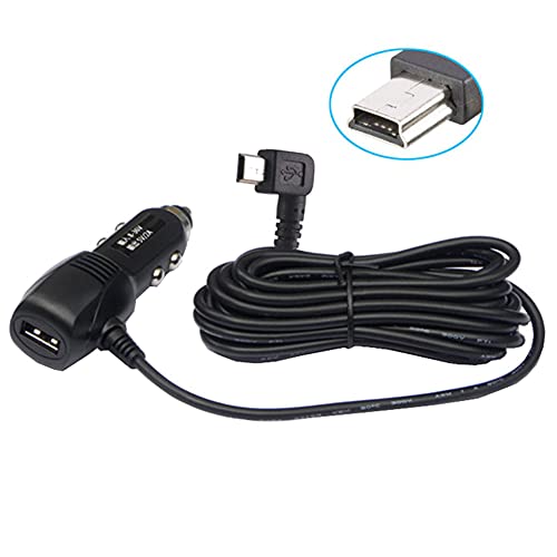 G66C Mini USB caricatore da auto con cavo da 3,5 m per navigatori auto, cavo adattatore con USB + Mini USB 5 pin inclinato a destra