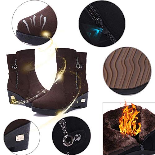 Gaatpot Stivali Donna Stivaletti Pelliccia Foderato Scarpe Invernali Caldo Stivale da Neve i Freddolosi Eleganti Zeppa Caffè EU35=CN35