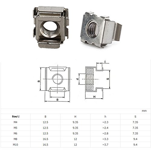 Dadi a gabbia quadrata per rack e armadi con fori quadrati.