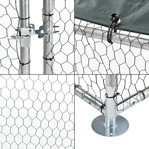 Gabbia per Pollame con Tettuccio Protezione Sole Voliera da Giardino 2 x 2 x 2 m Gabbia da Esterni Recinzione con Rete Metallico per Pennuti