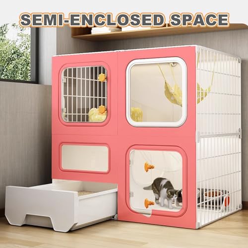 Gabbie per Gatti da Interno con Lettiera Gabbia per Gatti HD Trasparente Staccabile e Facile da Montare Ideale per Gatti, Porcellini D'India, Conigli, Piccoli Animali (Size: 2-2-1)