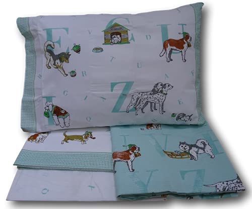 Gabel CAROSELLO. Coordinato Copriletto + Completo Lenzuola. Culla, Lettino. DOGS (Verde)