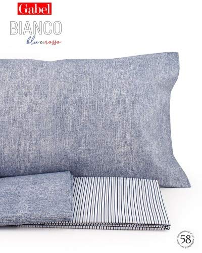 GABEL - Collezione Bianco Blu & Rosso - Completo Lenzuola Una Piazza - Stampato su Madapolam di Puro Cotone 100% - OCEANO