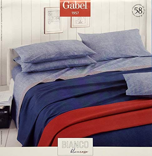 Gabel - Collezione Bianco Blu & Rosso - Completo Lenzuola - Stampato su Madapolam di Puro Cotone 100% - Oceano (1 Piazza)