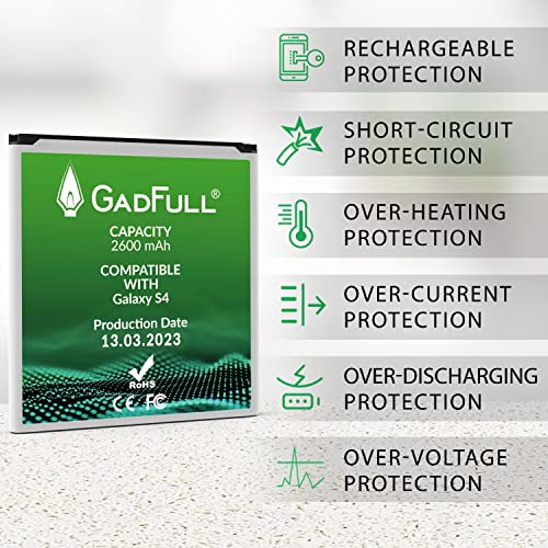 GadFull Batteria compatibile con Samsung Galaxy S4 | 2023 Data di produzione | Corrisponde al EB-B600BE originale | Compatibile con Galaxy S4 i9500 | LTE i9505