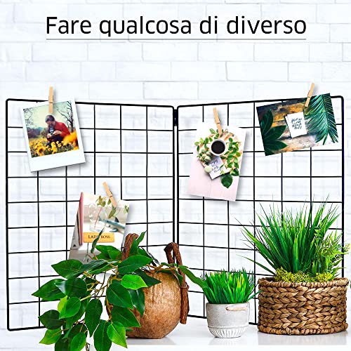 MATERIALI -Portafoto da parete in filo metallico di alta qualità con rivestimento nero, durevole e resi-stente alla ruggine. Con una dimensione di 60,5 (b) x 39,5 (h) cm per ciascun pannello, avrai più spazio per esporre le tue idee e le tue creazioni.