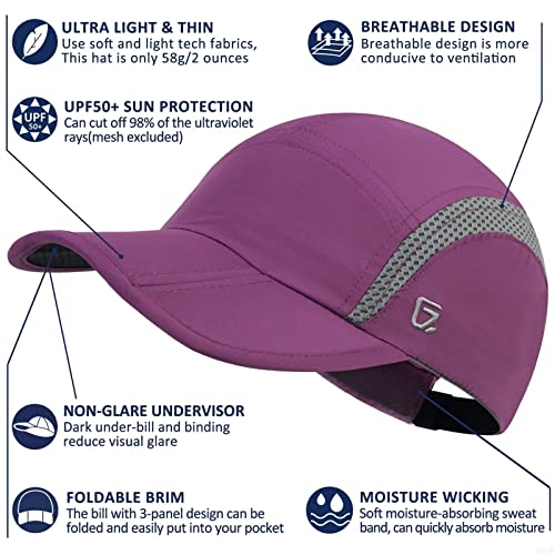 GADIEMKENSD Foldable Tech Running Hat for Women Cooling Ponytail Hats Light Quick Dry Baseball Caps Ultra-Thin Unstructured Gorras para Mujer Fitted for Beach Tennis Travel Hiking Golf Dark Purple
