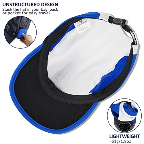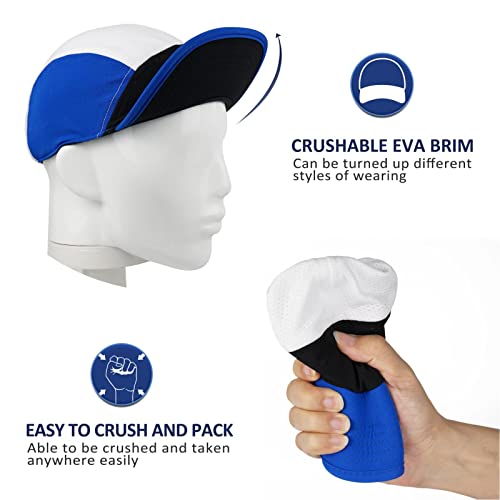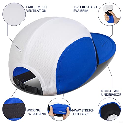GADIEMKENSD Running Hats for Men Stretch Fitted Baseball Cap Breathable Mesh Gorra Para Hombres Originales Blue White Golf Hat Soft Brim 5 Panel Workout Trucker Hat for Gym Tennis Camping Hiking Sport