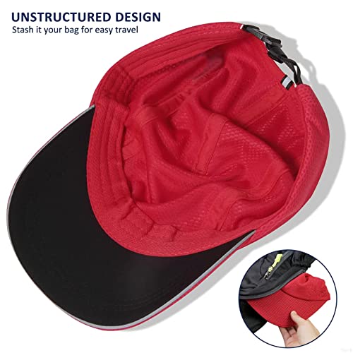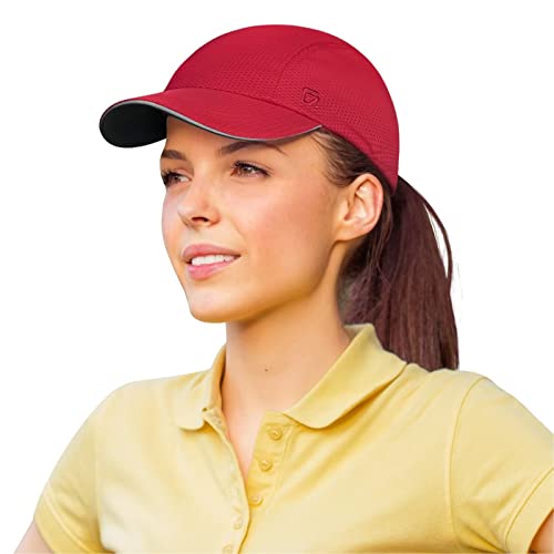 GADIEMKENSD Women's Race Day Running Hat Performance Mesh Baseball cap - Excellent Ventilation, Lightweight, Reflective Safety Ponytail Hats for Exercise Golf Hiking Beach Workout Gym Red