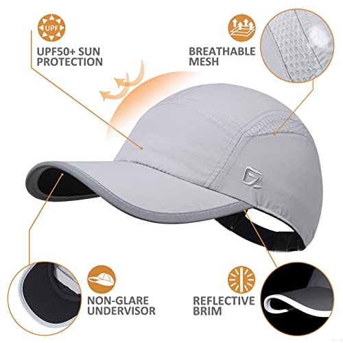 GADIEMKENSD Womens Hats Baseball cap UPF 50+ Sun Quick Dry Lightweight Breathable Reflective Trucker Hat Outdoor Hiking Fishing Run Golf Sports Dad Mesh Running Hats Ponytail for Women Light Gray M/L