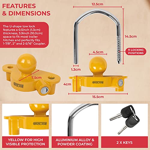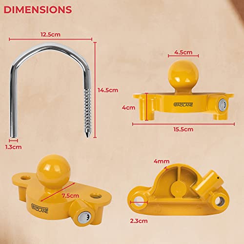 GADLANE Serratura Universale per rimorchio - Robusta Serratura a Gancio per roulotte con 6 Posizioni di bloccaggio in Alluminio Resistente - Kit di Sicurezza per rimorchio a Sfera - Include 2 Chiavi