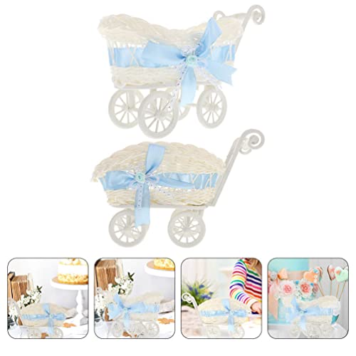 Gadpiparty 2 Pezzi Carrozzine Per Baby Shower Cesto Di Fiori Intrecciati Vimini Passeggino In Rattan Cestino Portaoggetti Caramelle Cestino Snack Carrelli Della Spesa Forma Di Carrello Cesto