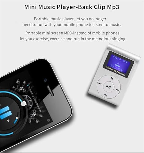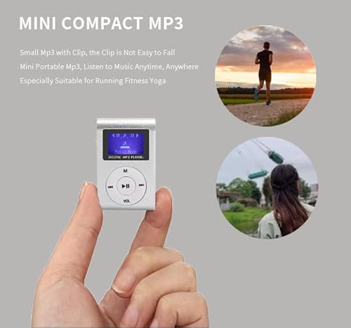 Gaeirt Mini Lettore MP3, Lettore Musicale Portatile, con Schermo LCD, Supporto per Scheda di Memoria, Supporto Massimo 32 GB, Adatto per Camminare e Correre (Argento e Nero)(Argento)