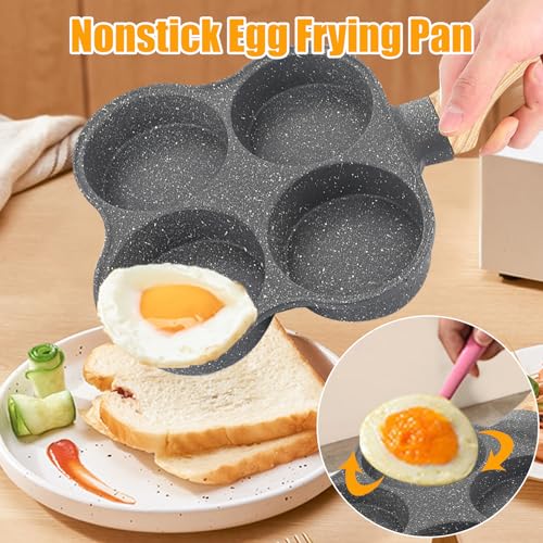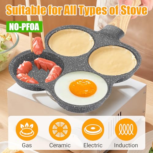 DESIGN A 4 TAZZE: Padella per uova dal design a 4 tazze, che può friggere quattro uova o hamburger diversi o quattro cibi diversi contemporaneamente, soddisfacendo le esigenze quotidiane della colazione delle famiglie normali.