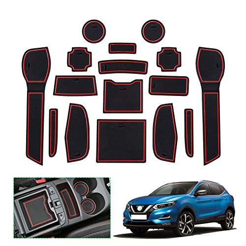GAFAT 2018-2021 Nisan Qashqai J11 Tappetino antiscivolo in gomma per console centrale, scatola di stoccaggio, tappetino con cuciture per porte (rosso)