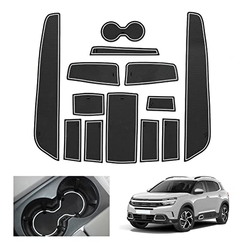 GAFAT Ci-troen C5 Aircross 2017-2022 2023 Tappetini Antiscivolo, Tappetino in Gomma per Console Centrale, Riporre Oggetti, Cuciture della Porta, Compatibile con Citroen C5 Aircross (Bianco)