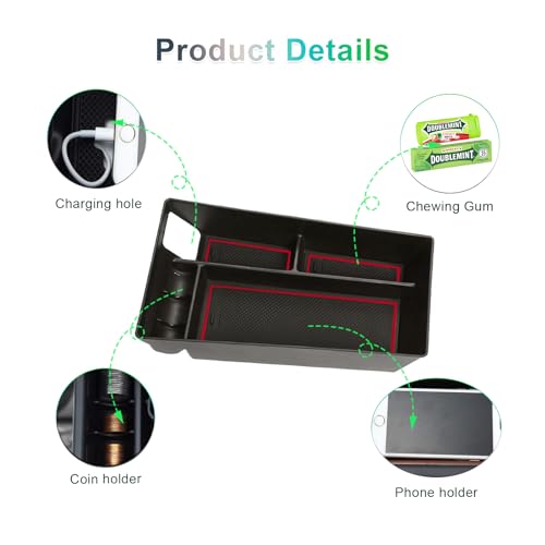 GAFAT Compatibile con Ford Mustang Mach-E 2021-2023 2024 Contenitore per Console Centrale, Mach E 2024 Organizer per Braccioli, Bracciolo Centrale, Vano Portaoggetti (rosso)