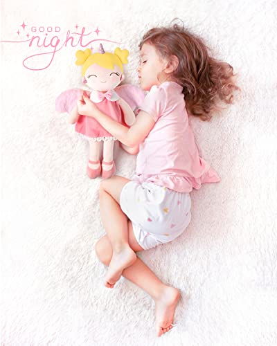 GAGAKU Bambola morbida di stoffa, 43 cm, motivo: unicorno custode, regalo per battesimo, bambina con ali, portafortuna per bambini da 0 a 5 anni, rosa