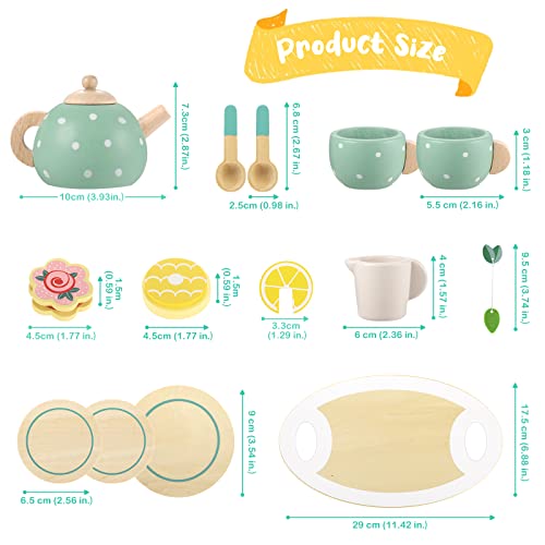GAGAKU Set da tè in legno per bambini, giocattoli in legno, set da tè per bambini, accessori da cucina per bambini, set da gioco per bambini, set da 15 pezzi (KABI-0145)