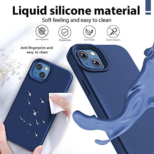 Gahwa Cover in Silicone Liquido Compatibile con iPhone 13 Case (6.1 Pollici), Cover Protettiva per Fotocamera con Schermo Intero, Antiurto, Custodia in Morbida Microfibra Antigraffio, Blu Navy