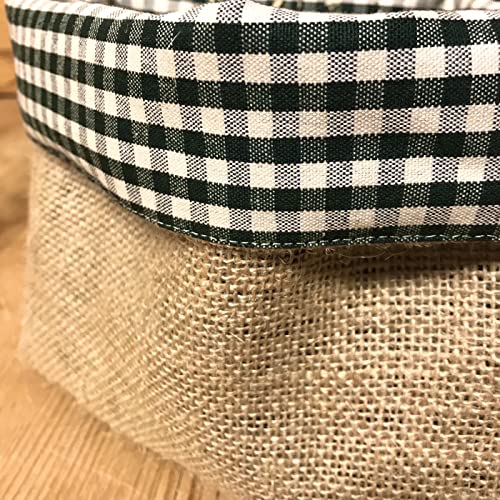 Gaidra Cesto Pane Cestino Portapane in Tessuto Iuta e Cotone a Quadretti - Sacchetto di Design Fatto con qualità Artigianale in Fibre Naturali - Quadretti Verde, 20 x 20 x 10 cm