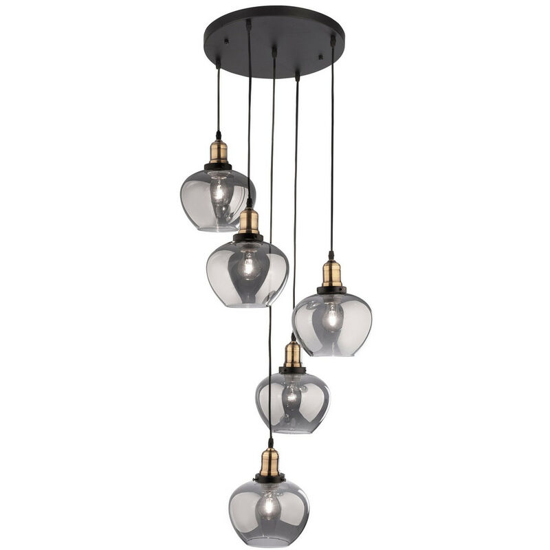 Merano Gainesville Plafoniera a sospensione a 5 luci, vetro fumé, bronzo, metallo nero LED E27 | Finitura: Fumo, Bronzo, Nero | Materiale: metallo, vetro | Classificazione IP: IP20 | Altezza: 160cm | Lunghezza: 50 cm | Tipo di lampada: E27 | N. di lampade: 5 | Lampadina inclusa: No | Dimmerabile: No | Peso: 4,3 kg | Potenza (massima): 5x12W