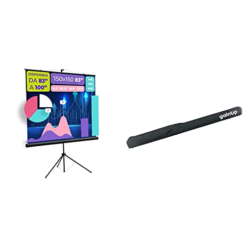 GAINUP Schermo Proiettore Treppiede con Borsa INCLUSA | 150x150cm (83 Pollici) 150cm | Formato 4:3 16:9 16:10 - Telo Bianco con Retro Nero - Telo Proiezione Manuale 1.5m - Videoproiezione UltraHD