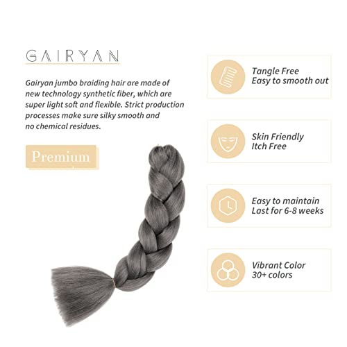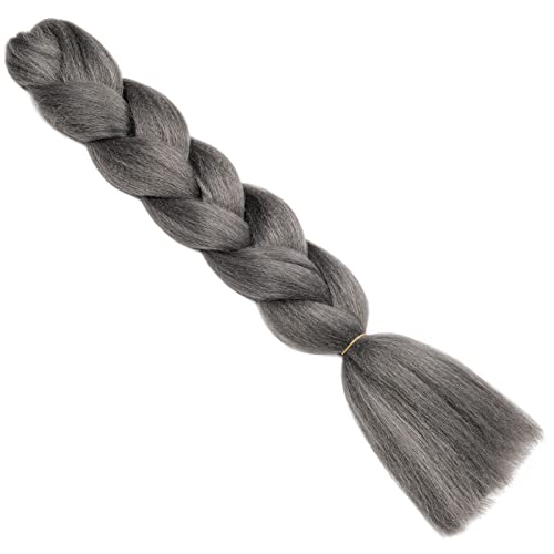 Gairyan Extension per Treccine Africane Extension Capelli Finti per Treccine Afro 24" Ombre Treccia Capelli Sintetici Crochet Twist Jumbo Braids confezione da 1 (Grigio Scuro)