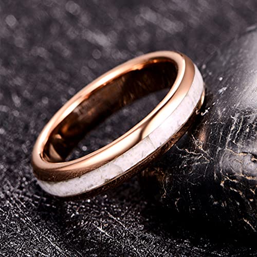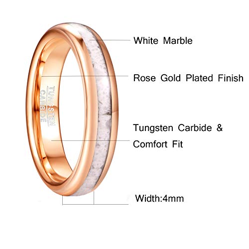 GALANI Anello Nuziale in Oro Rosa Donna Uomo Carburo di Tungsteno 4mm Intarsio in Marmo Bianco Anello Coppia Ipoallergenico Taglia 22.5