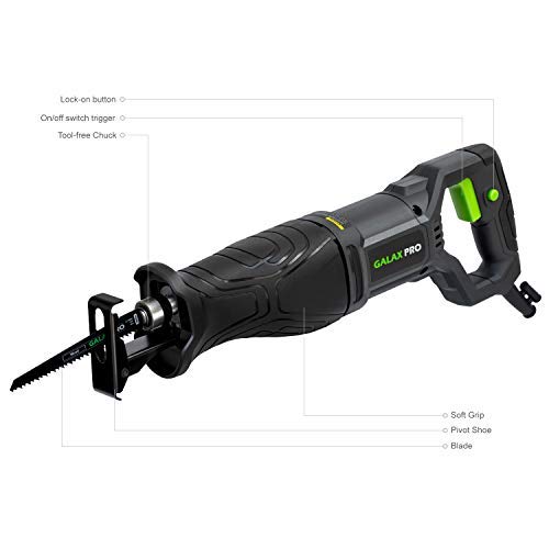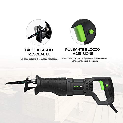 GALAX PRO Sega a Gattuccio,900W Seghetto Universale, Velocità Variabile 0-2800SPM, Corsa da 28 mm, Tasto di Blocco Della Velocità, Sostituzione della Lama Senza Utensili, con 4 Lame